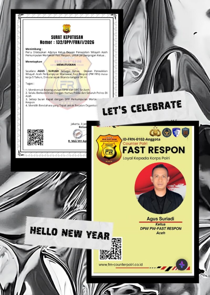 Jakarta – Dewan Pimpinan Pusat (DPP) Perkumpulan Wartawan Fast Respon (PW FRN) secara resmi menetapkan Agus Suriadi sebagai Ketua Dewan Perwakilan Wilayah (DPW) PW FRN Aceh untuk masa kerja lima tahun ke depan.