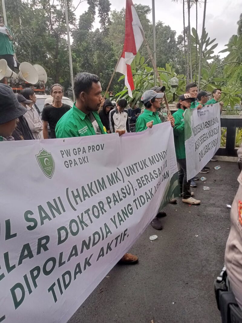 “Persoalan ini tidak bisa dibiarkan. Ini bukan sekadar masalah ijazah, tetapi lebih kepada menjaga marwah dan kesucian MK dari oknum nakal,” seru Ketua PW GPA DKI Jakarta dalam orasinya di depan Kantor MK, Kamis (13/11/2025).