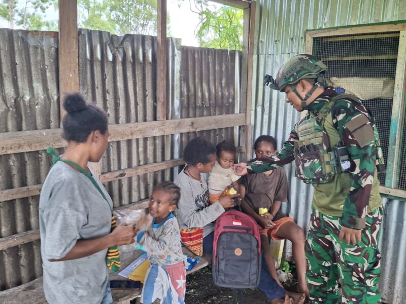 Personil Satgas Pamtas Kewilayahan Yonif 521/DY Pos Kout Elelim melaksanakan Anjangsana di Distrik Elelim Kab. Yalimo. (15/11/2025)