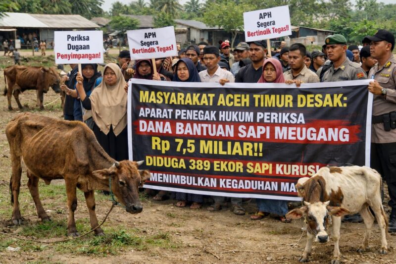 Aceh Timur — Polemik pengadaan sapi bantuan Meugang untuk masyarakat terdampak bencana hidrometeorologi di Kabupaten Aceh Timur memasuki babak baru. Sejumlah pihak mendesak aparat penegak hukum untuk mengusut transparansi penggunaan anggaran bantuan sebesar Rp7,55 miliar yang digelontorkan pemerintah pusat.